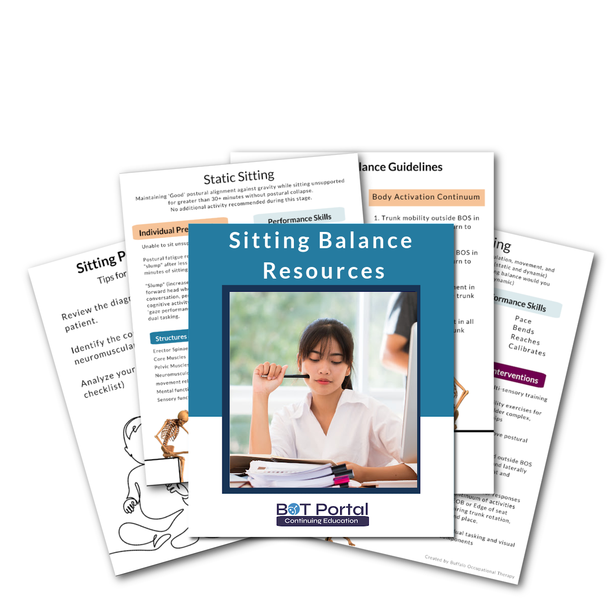 Remediate structures, functions, and functional movement patterns – Therapeutic Exercise and Neuromuscular Re-education for postural mm strength and endurance as well as sitting/standing dynamic balance prior to offering suggestions for occupation-specific execution without assistance.